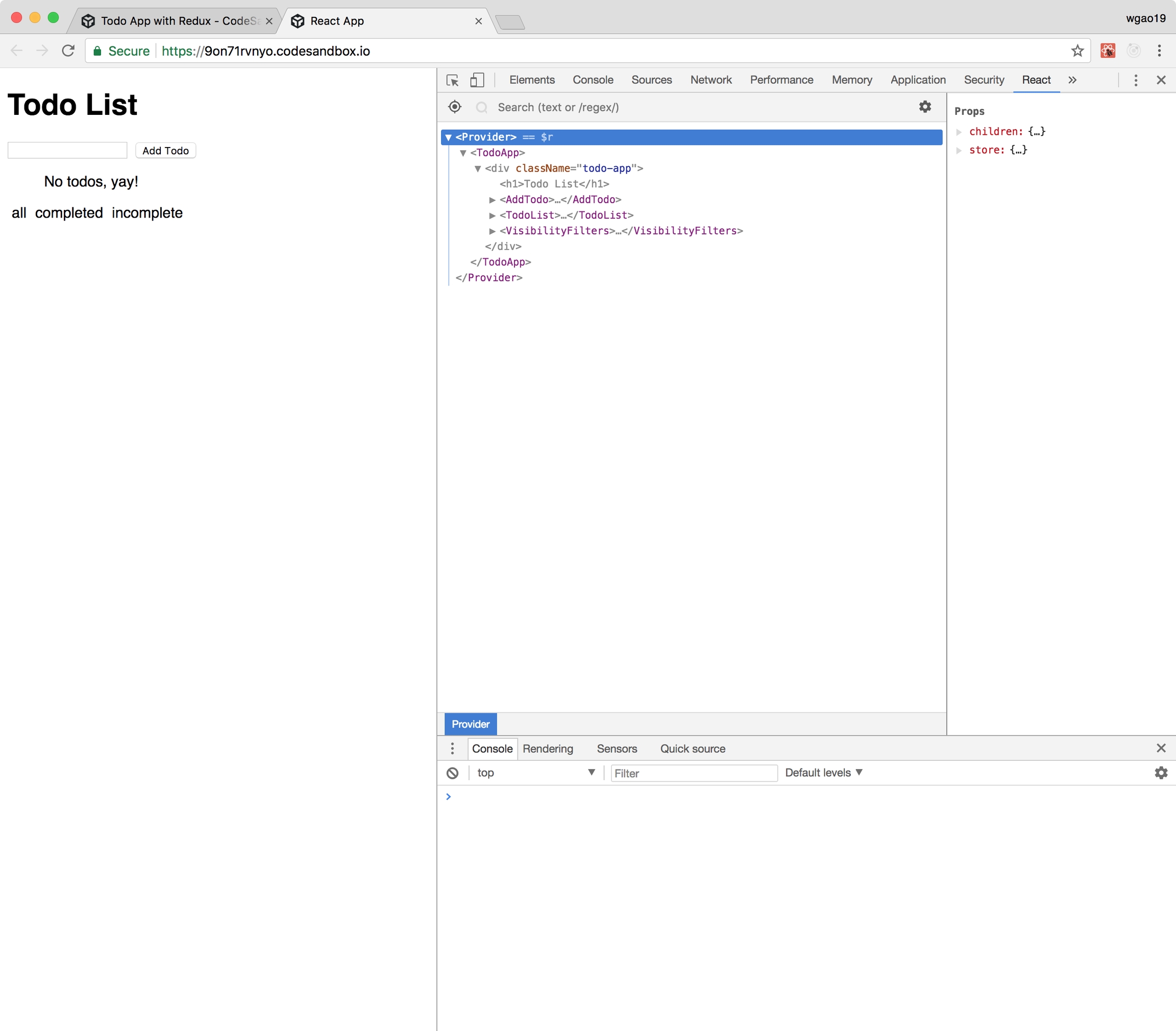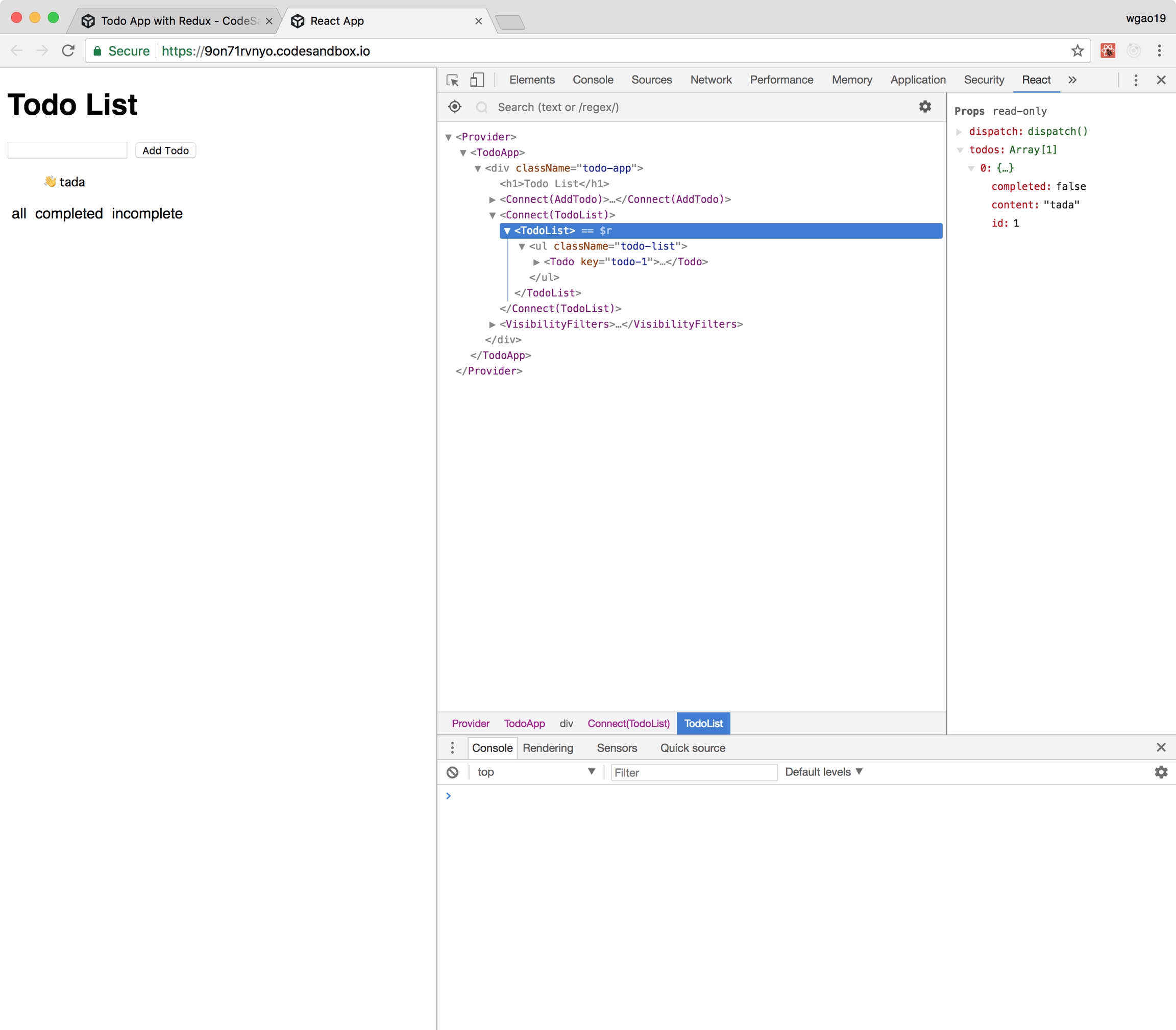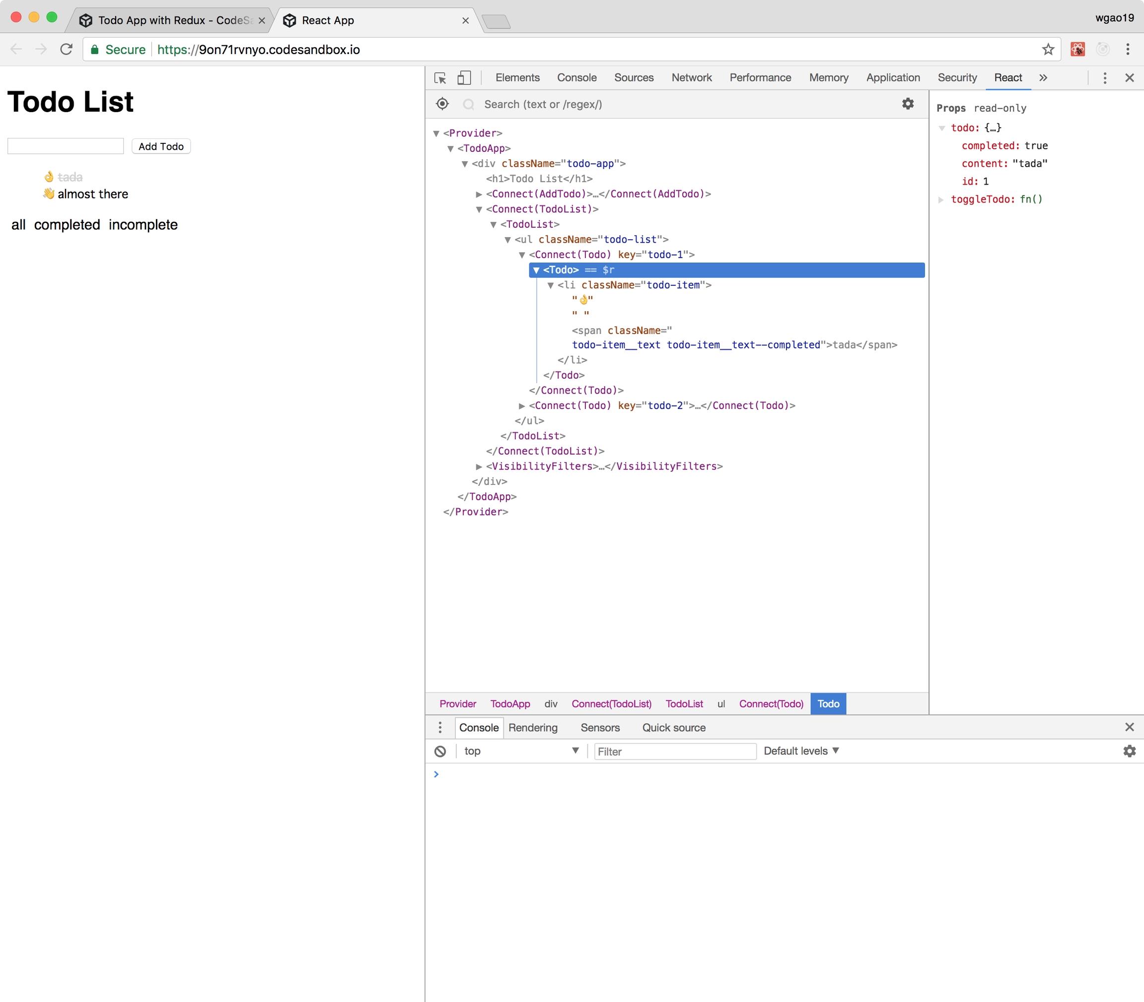 Now we've finished a very simple example of a todo app with React-Redux. All our components are connected! Isn't that nice? 🎉🎊